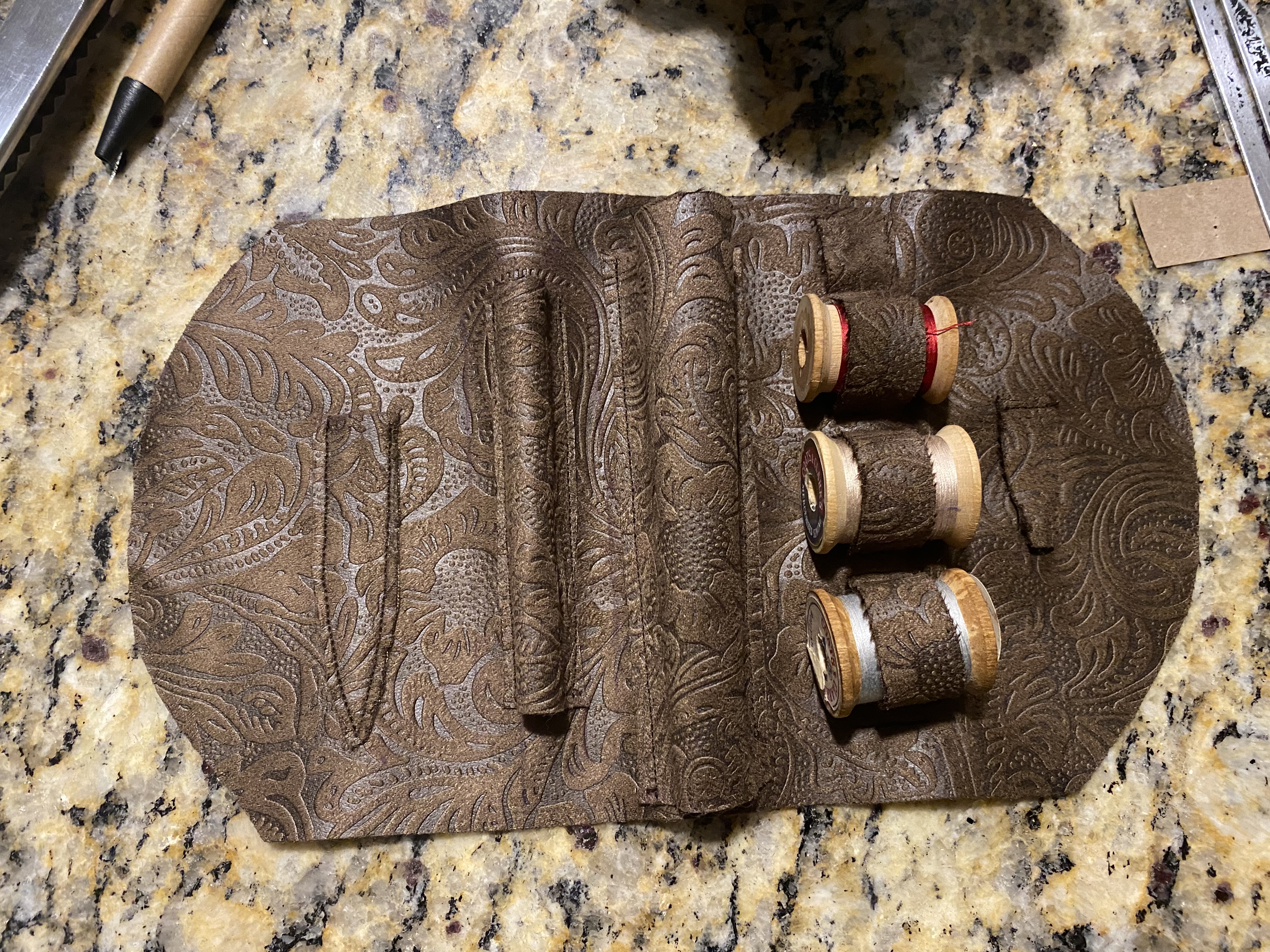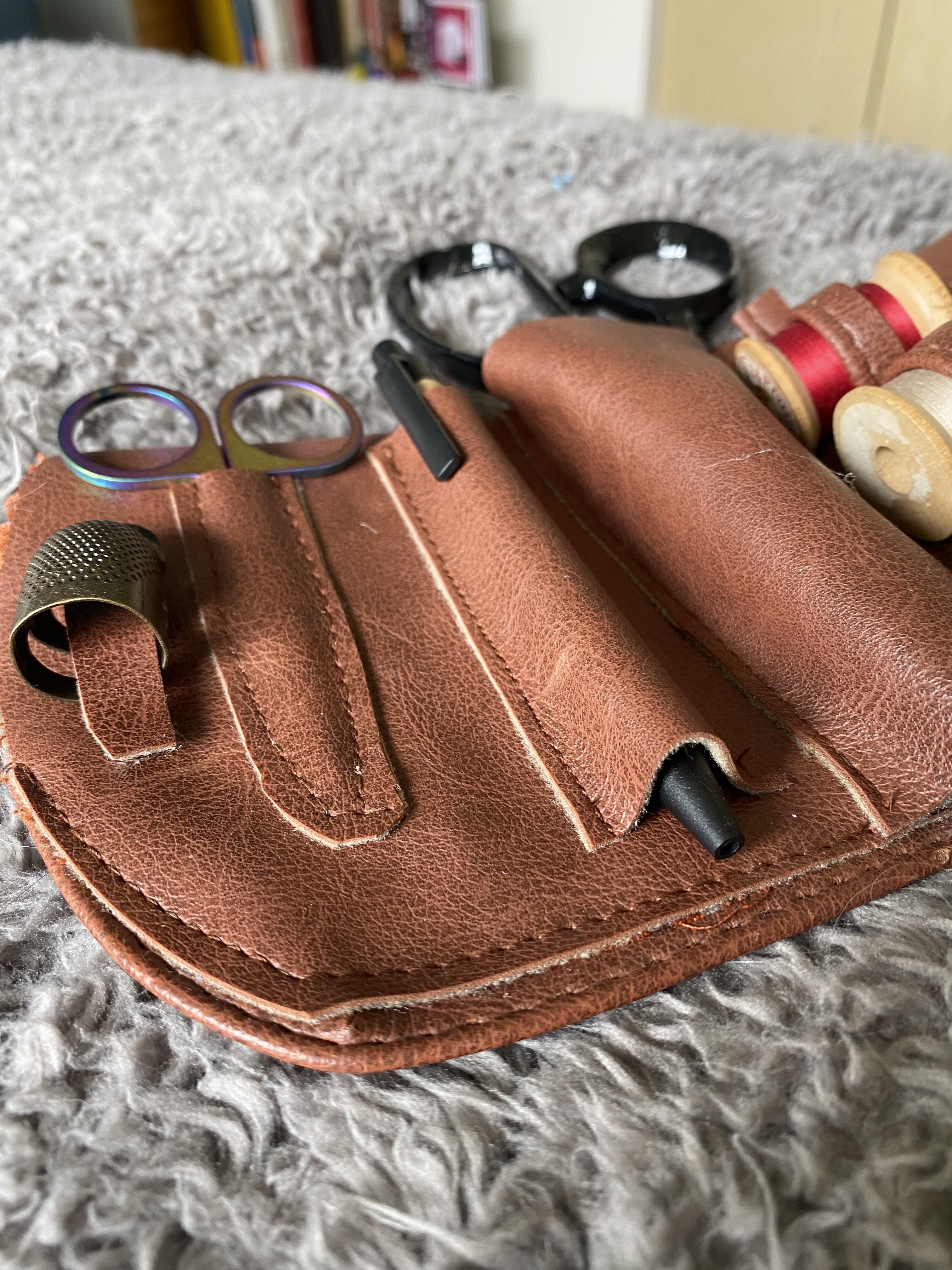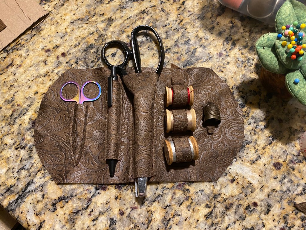 It was at this moment that I realized I’d made an error. The pattern, and historical reference, show the foresleeves to have multiple puffs of white linen at both the bottom and body of the foresleeves. I even have it marked on my pattern pieces to leave windows on the body for these puffs around the wrist area. But I had forgotten to cut them and had chosen to seam and turn the edges rather than using bias tape. If I had used bias tape, I could have cut the puff allowance areas and finished the oval openings with bias tape to match. But since I didn’t, I felt that it would look like a mistake. It was also at the point where I didn’t particularly care to add them in. Hence, I decided not to. Creative liberties!